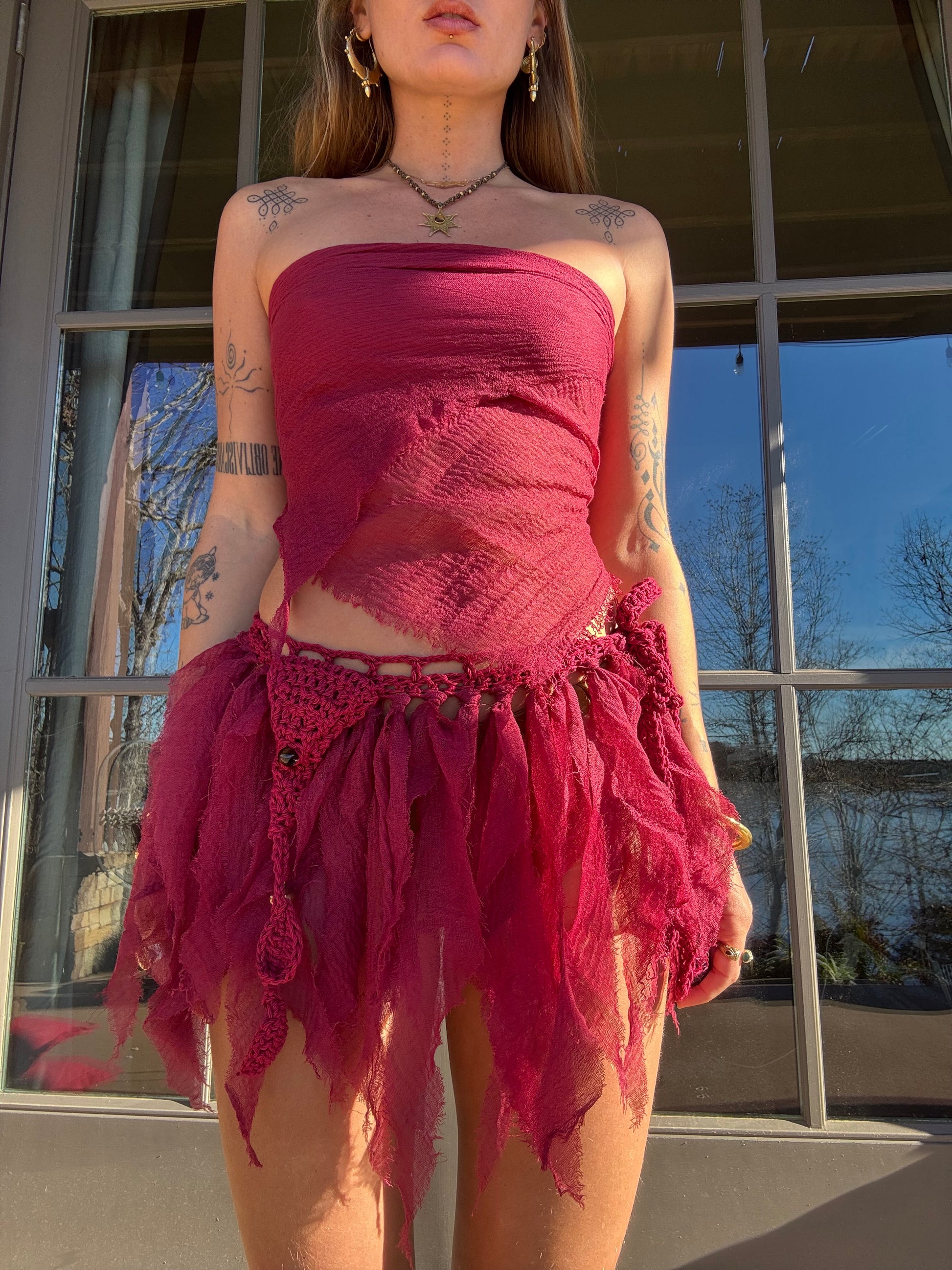 The most fairy of them all <3 Adjustable skirt, ties to any size. Features a trinket pocket with a little gold bell attached. Top comes free! It is the left over fabric I used for the skirt tied into a top :)